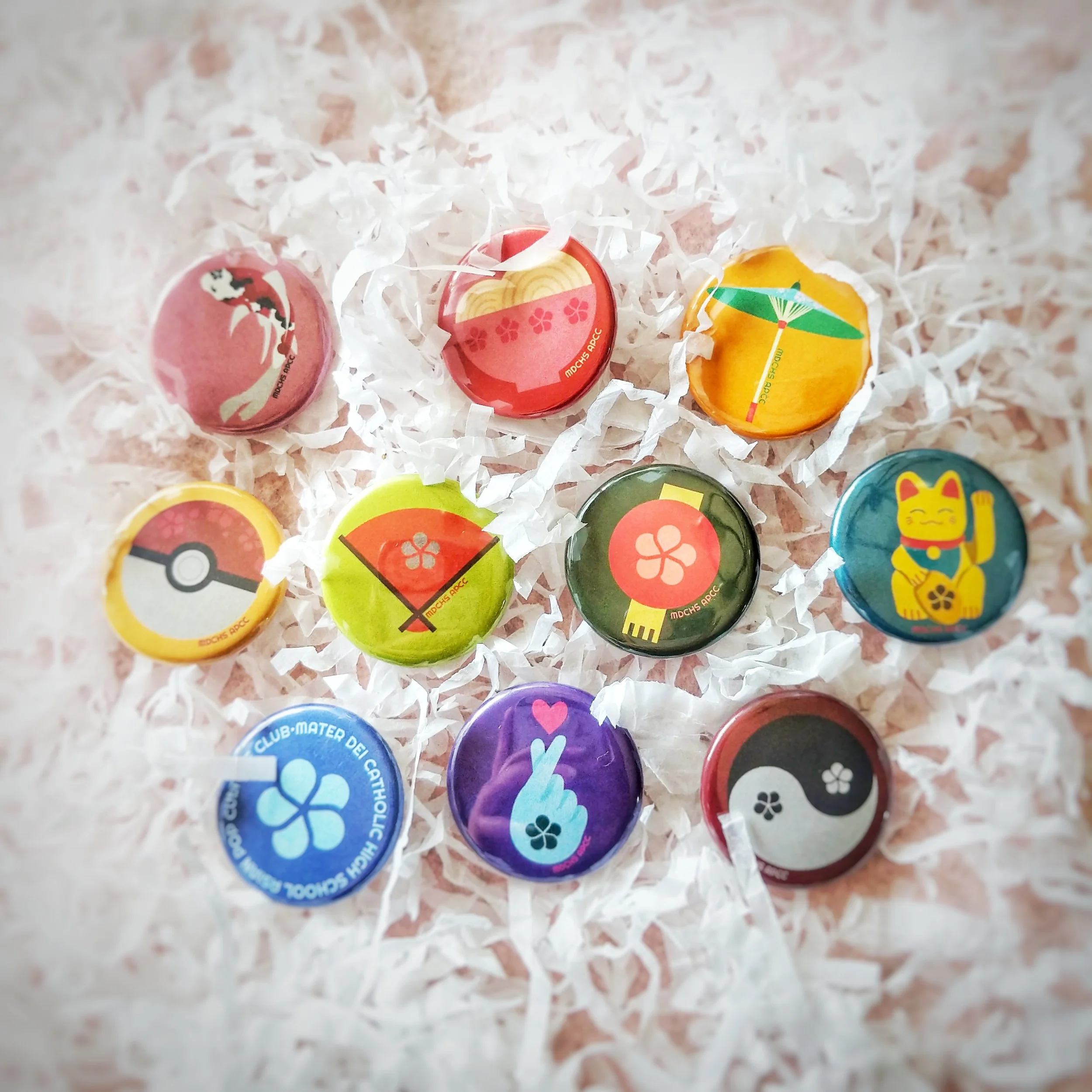 These 10 buttons kicked off my love for making merchandise in 2019. I designed these to feature the different aspects of Asian pop culture as part of my Asian Pop Culture Club merchandise line from high school.